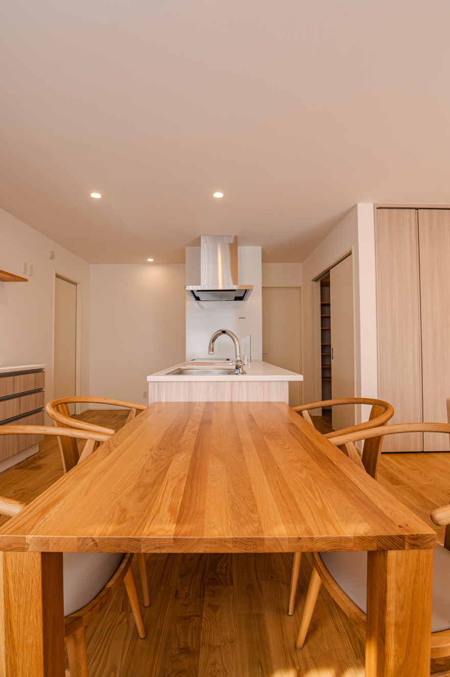 ・食事の配膳や食後の後片づけの際はキッチンとダイニングの間を移動する必要がなく、毎日忙しい中でも家事ラクな家が叶う