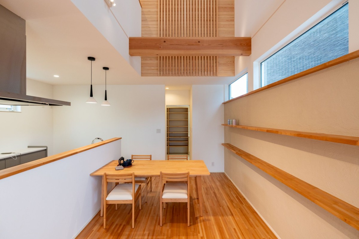 - 吹き抜けからは柔らかい光が差し込むLDK約19帖