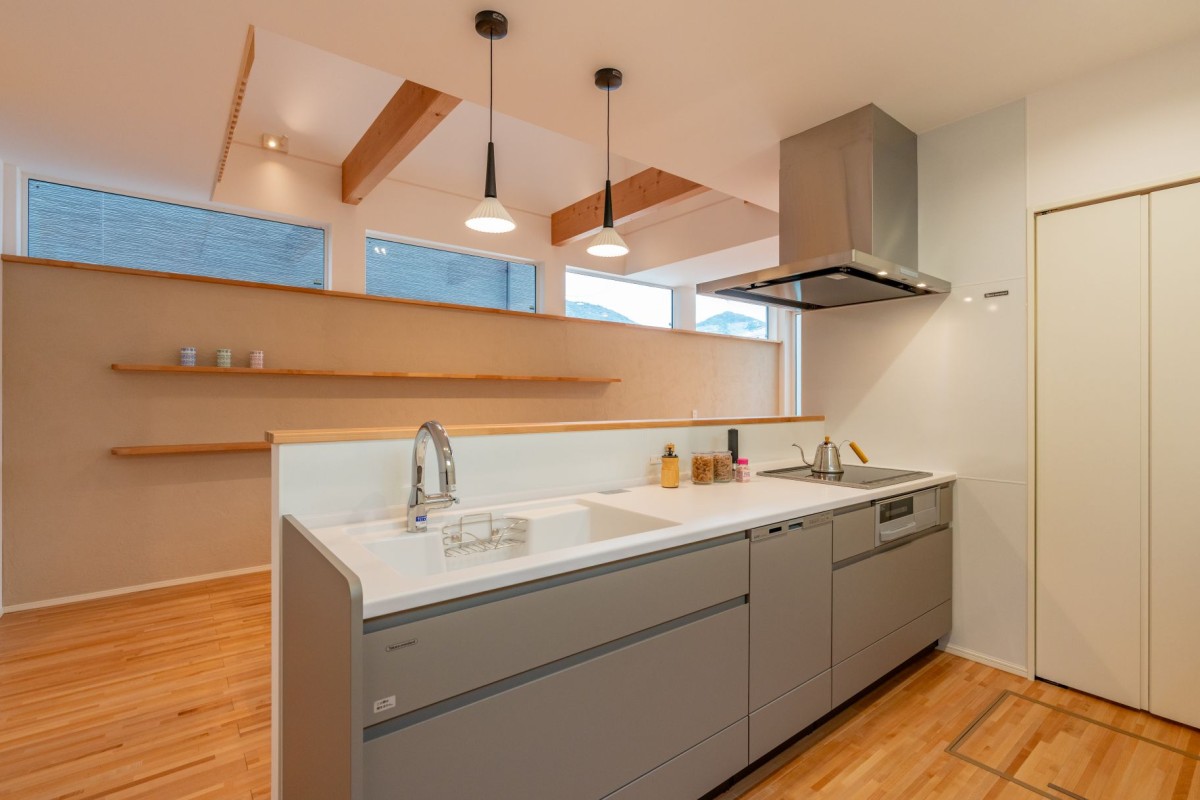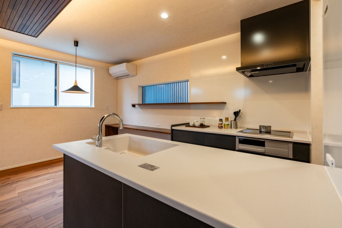 - ハイドアや下がり壁のないシャープな設計で圧迫感を軽減!!