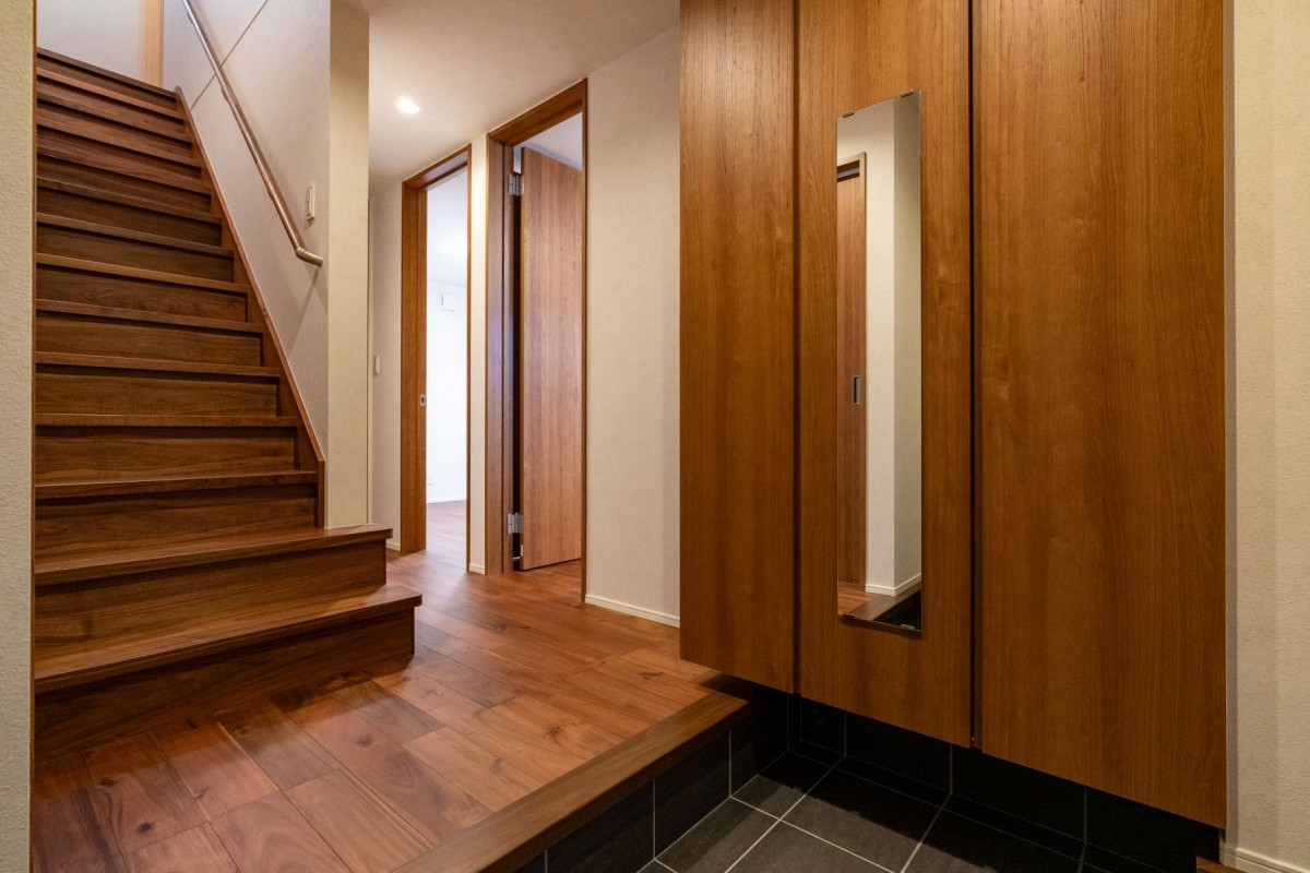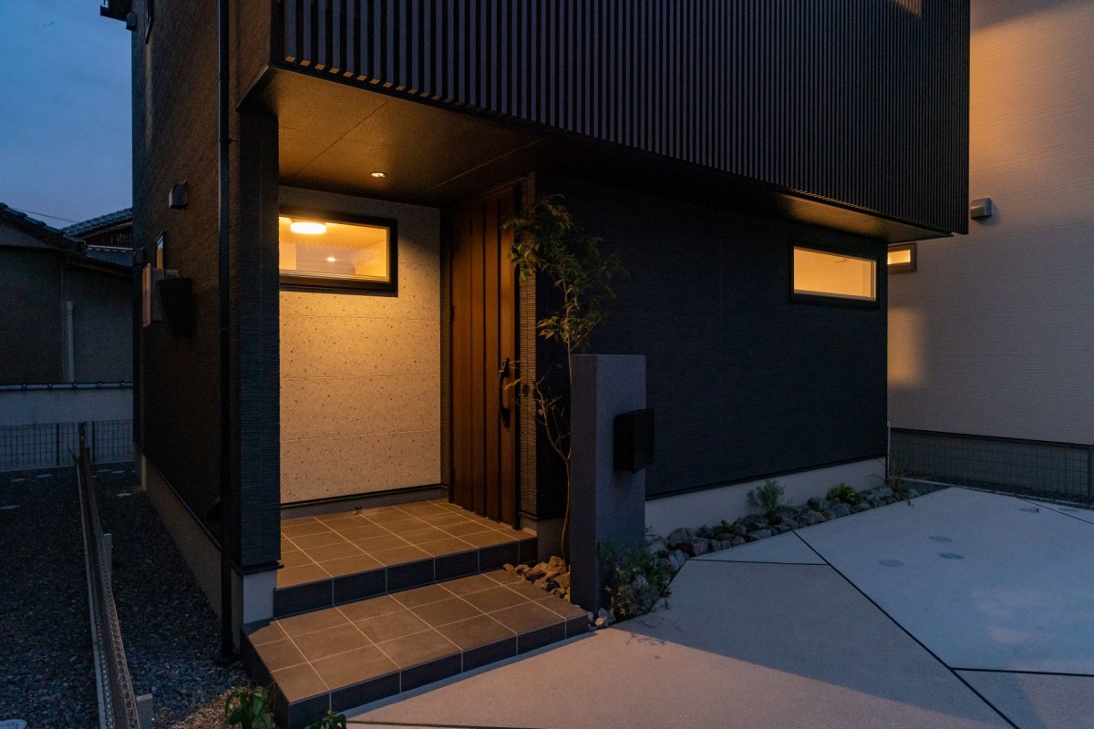 ―シックな色合いと檜(ひのき)の温もりが調和した、重厚感のある和モダンな住まい―