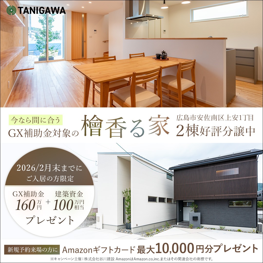 【広島】今ならまだ間に合う!!GX補助金対象住宅 上安2棟好評販売中 NEW