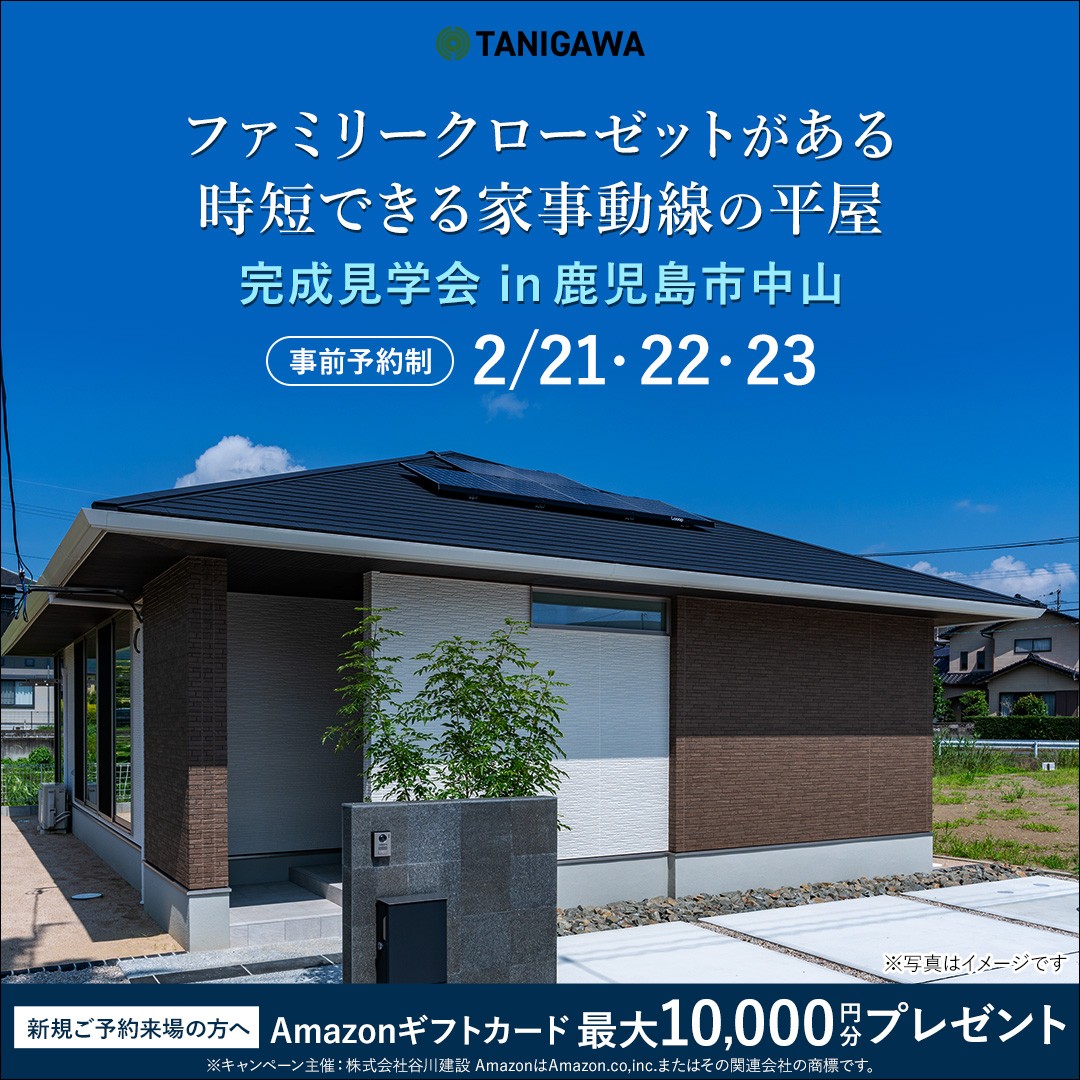 | 補足 | 事前予約制のイベントで、WEBからのご予約をおすすめしています。 当日のご予約は、御電話で。 谷川建設 鹿児島営業所 ※火・水曜日 TEL 099-813-2222 |