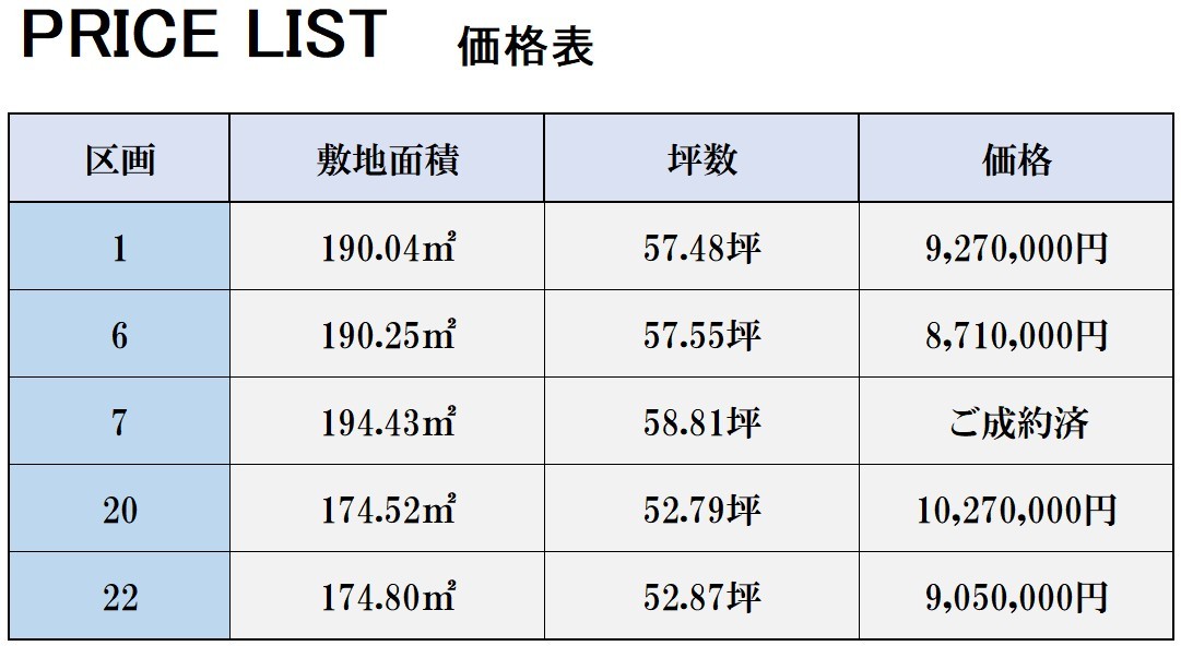 【建築条件付宅地分譲地概要】●総区画/43区画●当社保有/5区画●区画面積/174.52㎡~190.25㎡●販売価格/8,710,000円~10,270,000円●最多販売価格帯/900万円台(3区画)●取引態様/売主●お申込み済・ご契約済の場合がございますので、あらかじめご了承ください。●広告作成日/令和7年9月30日の情報です。●広告有効期限/令和7年12月末日