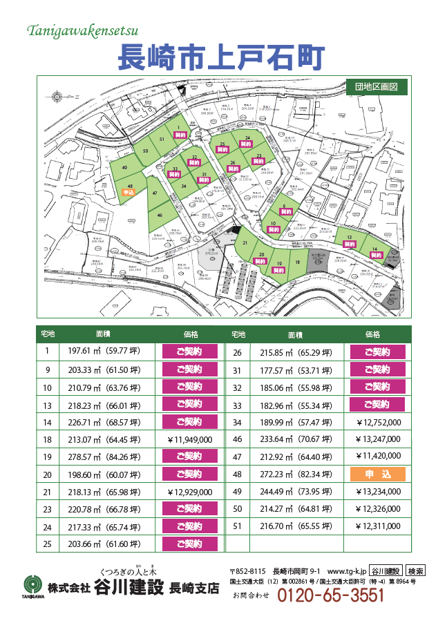 - この土地は、土地売買契約締結後3ヶ月以内に当社と建物請負契約を締結して頂く事を条件として販売します。この期間内に建物請負契約が成立しなかった場合には、土地売買契約は白紙となり、申込金その他お預りした金銭は全額(契約書に貼り付けた印紙代を除く。) 無利息でお返し致します。