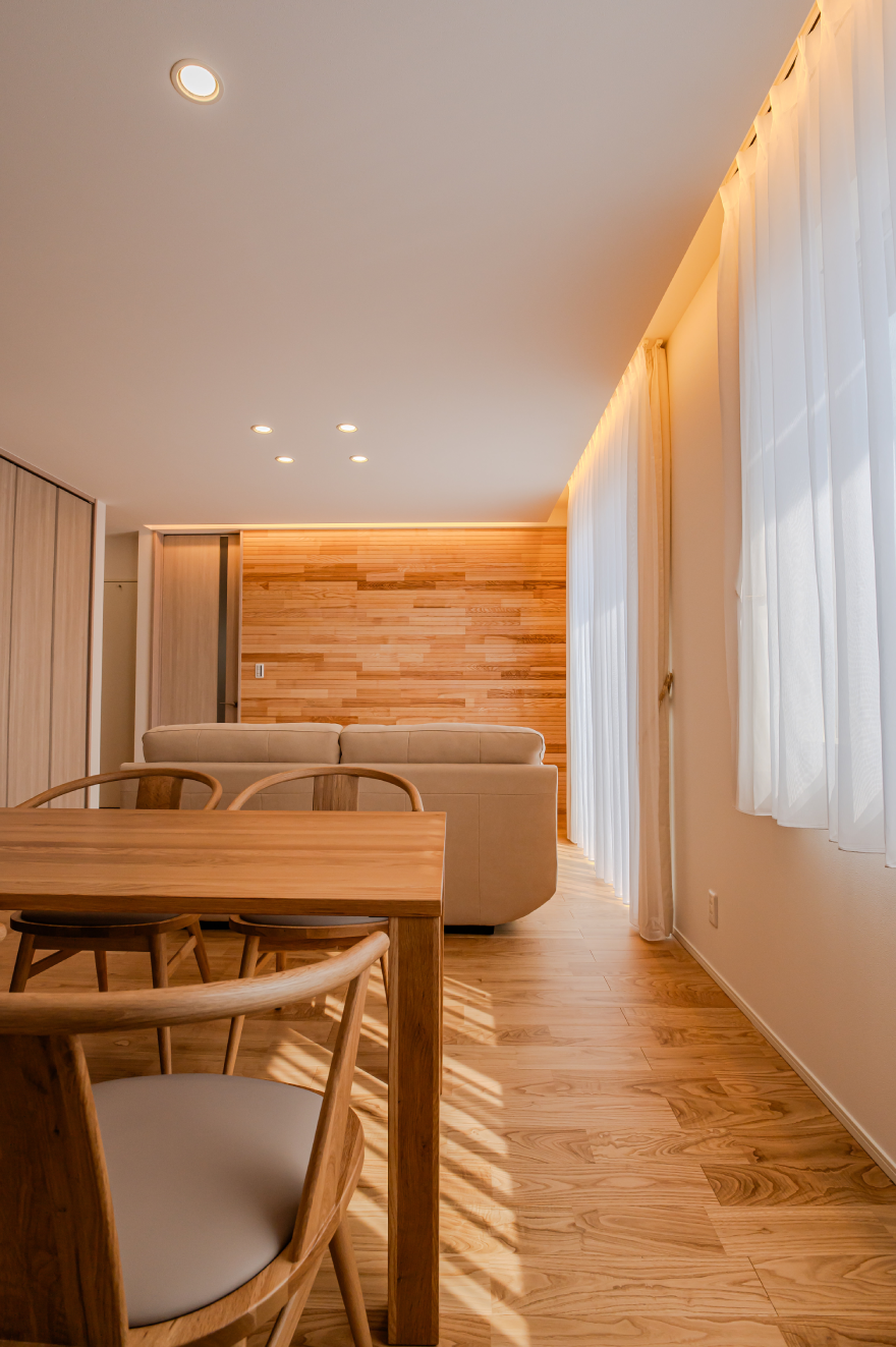 ・食事の配膳や食後の後片付けの際はキッチンとダイニングの間を移動する必要がなく、毎日忙しい中でも家事ラクな家が叶います