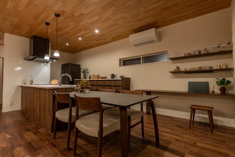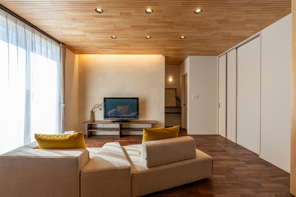 敷地条件を最大限に活かし、2台分の駐車スペースをゆったりと確保。明るいLDKと南面に配置した子ども室が、家族の毎日に心地よい光を届けます。