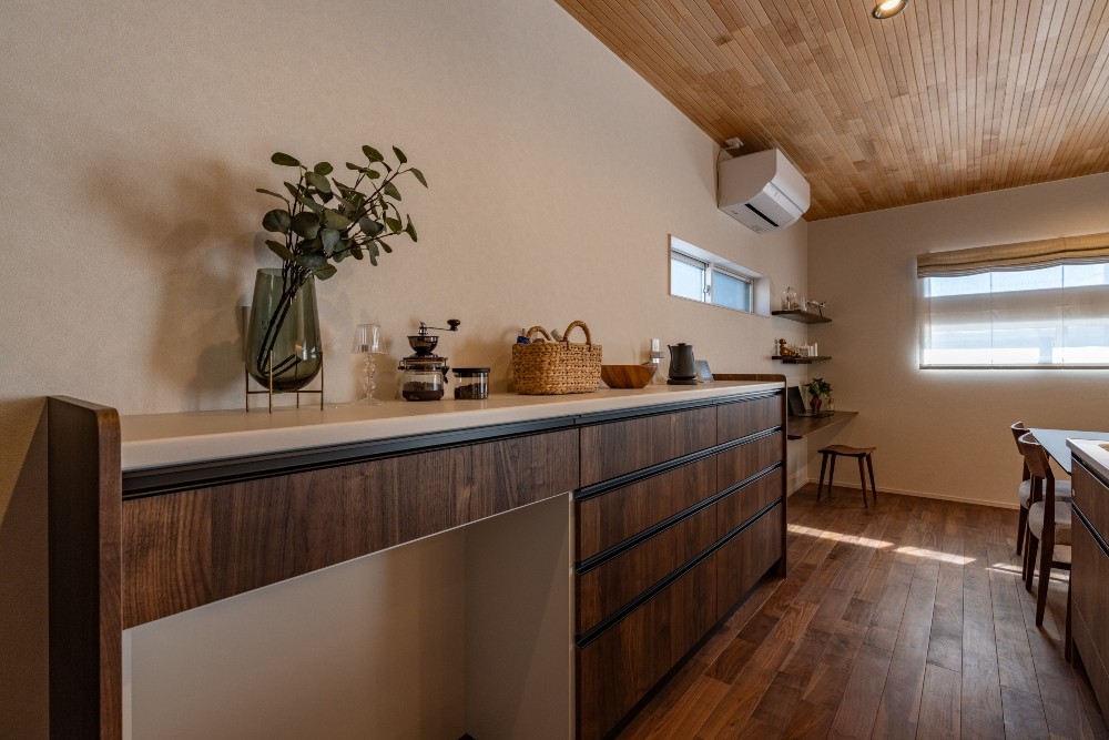 各部屋に2〜3帖のクローゼットを設け、さらに小屋裏収納もプラス。家中が片づきやすく、ライフスタイルの変化にも柔軟に対応できます。